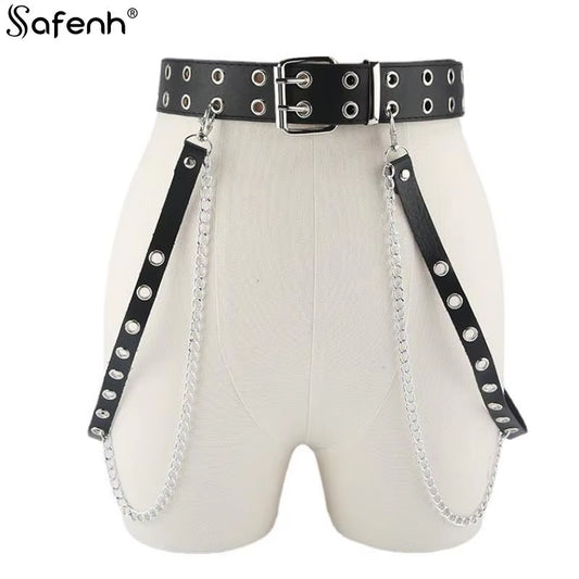 1Pcs Unisex Women Adjustable Chain Belt Punk Hip-Hop Belt with Chain Gothic Leather Waist Belt for Women Female Punk Belt